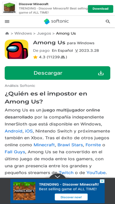 Softonic among us. Among Us lately has been an very by popular games, perhaps it is because its extremely funfull game to play. Becoming an impostor is the dream by player in Softonic among us game. Because you can kill others and It is fun to see friends fighting each other to vote for the impostor, and sometimes they start of to acuse who is Is the real Impostor Softonic Among Us.